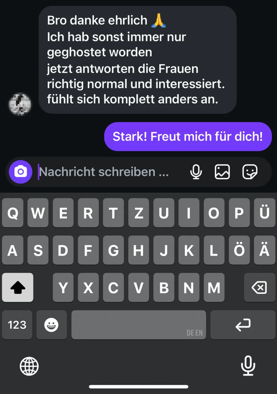 ➔ Ich weiß, was Frauen auf Dating-Apps wirklich wollen – und wie du dein Profil so aufbaust, dass sie dich anschreiben, statt dich nach links zu swipen.