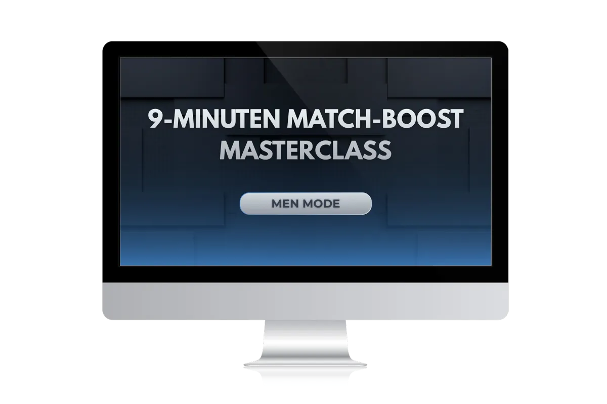 Der 9-Minuten Match-Boost ist das Wissen aus Jahren voller Tests, Optimierungen und direktem Feedback von echten Frauen – in ein System gepackt, das dich zum Mann macht, auf den sie matchen, antworten und sich freuen zu treffen.